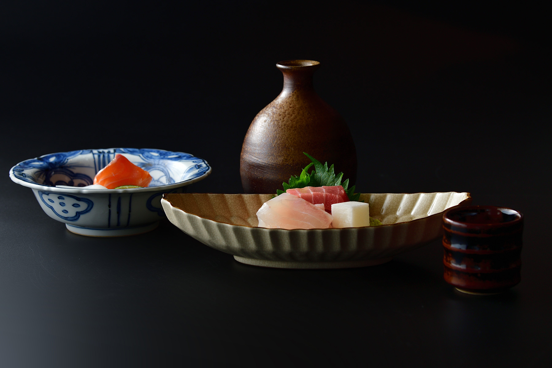 四季を伝えるとりどりの器と、厳選された日本酒。